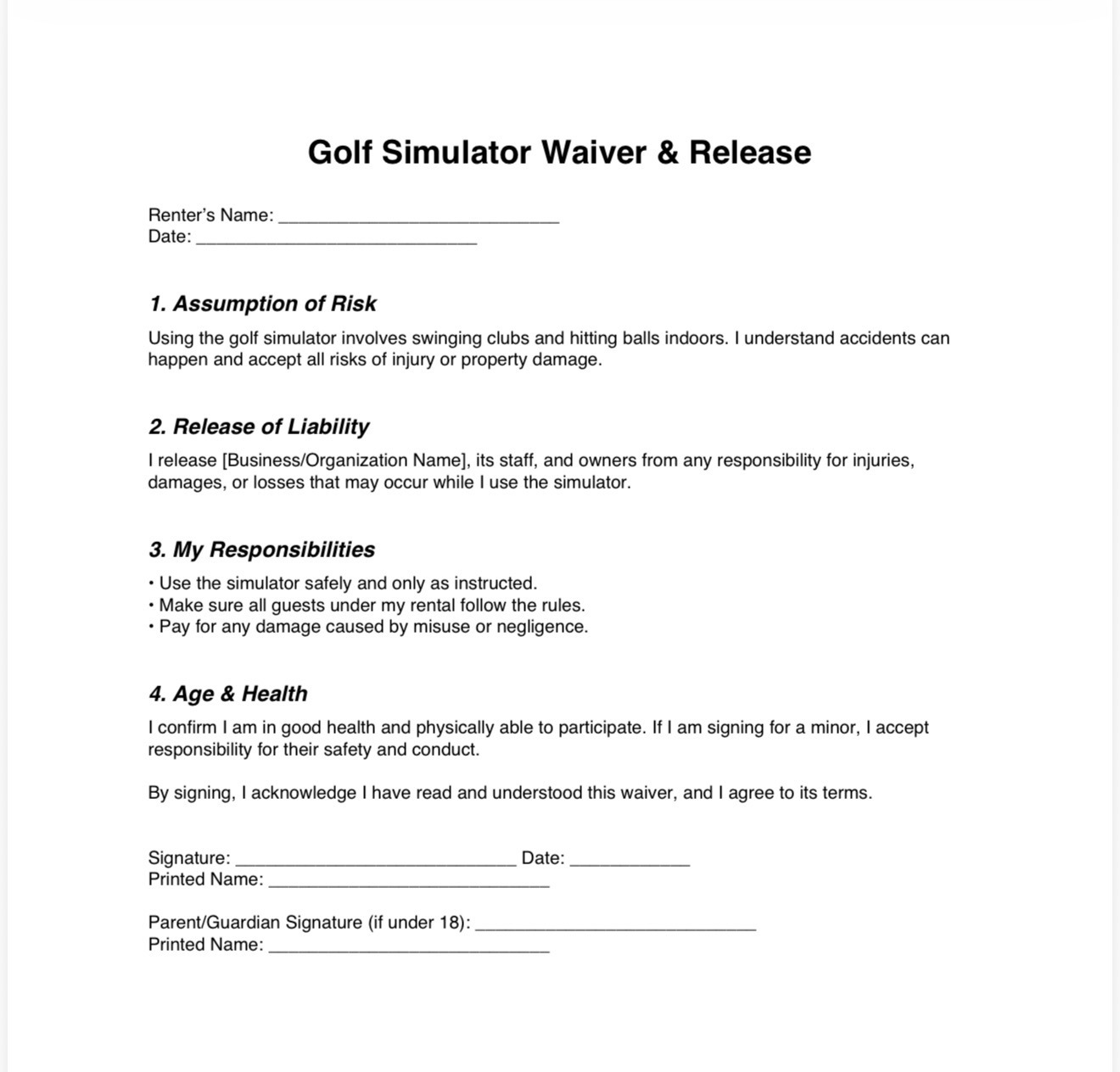 A waiver is a legal document that releases liability for potential risks.